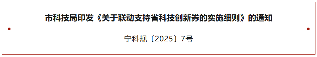 为贯彻落实省科技厅省财政厅《关于印发〈江苏省科技创新券管理办法(试行)〉的通知》(苏科规范〔2024〕2号)精神,现制定并印发《关于联动支持省科技创新券的实施细则》给你们,请遵照执行。